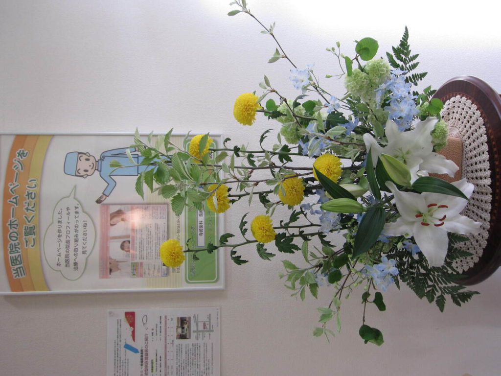 *黄色の丸い花はマミー、白い花はこでまり、枝ものはヤマナシです*